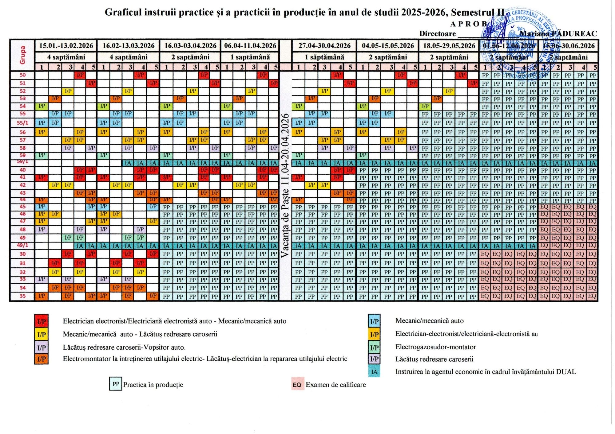 Graficul desfășurării stagiilor de practică